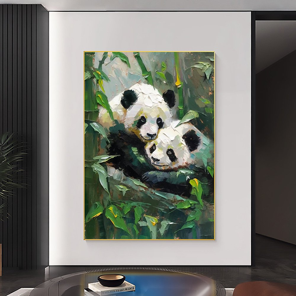 Hand Painted Oil Painting Original Panda Oil Painting on Canvas Large Textured Wall Art Abstract Nature Art Custom Animal Painting Modern Living room