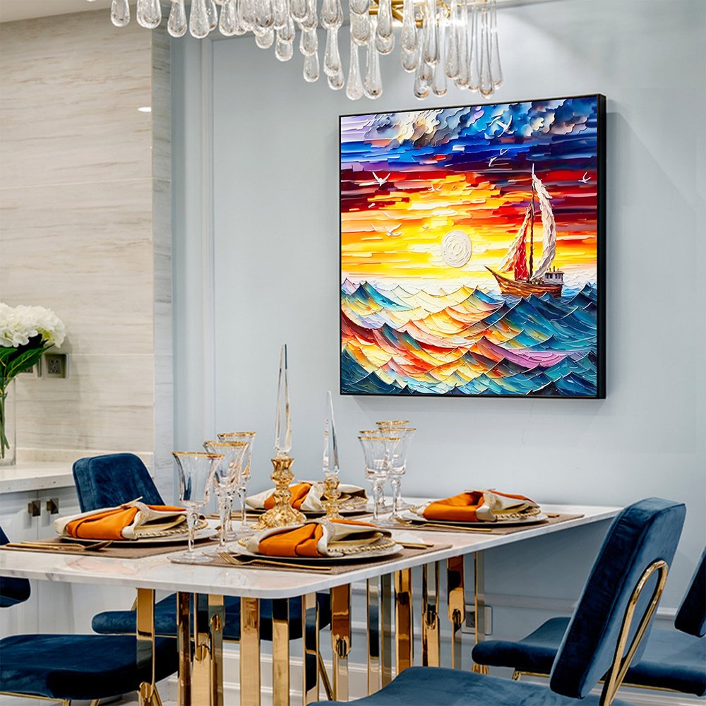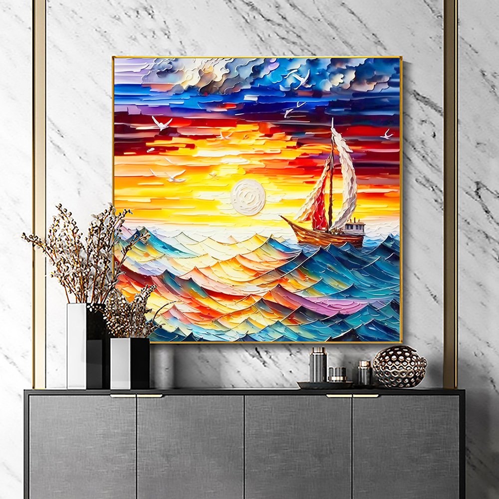 Handmade Oil Painting Original Nautical Oil Painting On Canvas Large Wall Art Abstract Colorful Sailboat Painting Sunset Ocean Painting Living Room Wa