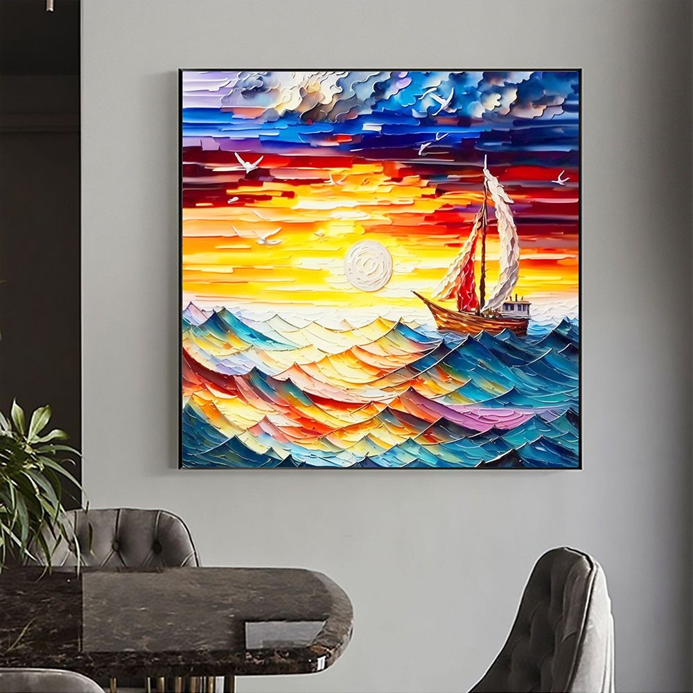 Handmade Oil Painting Original Nautical Oil Painting On Canvas Large Wall Art Abstract Colorful Sailboat Painting Sunset Ocean Painting Living Room Wa