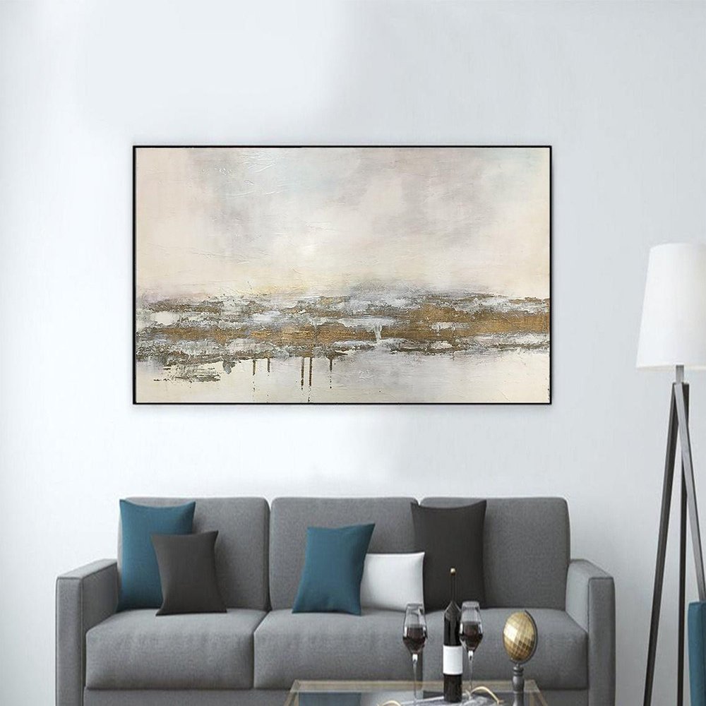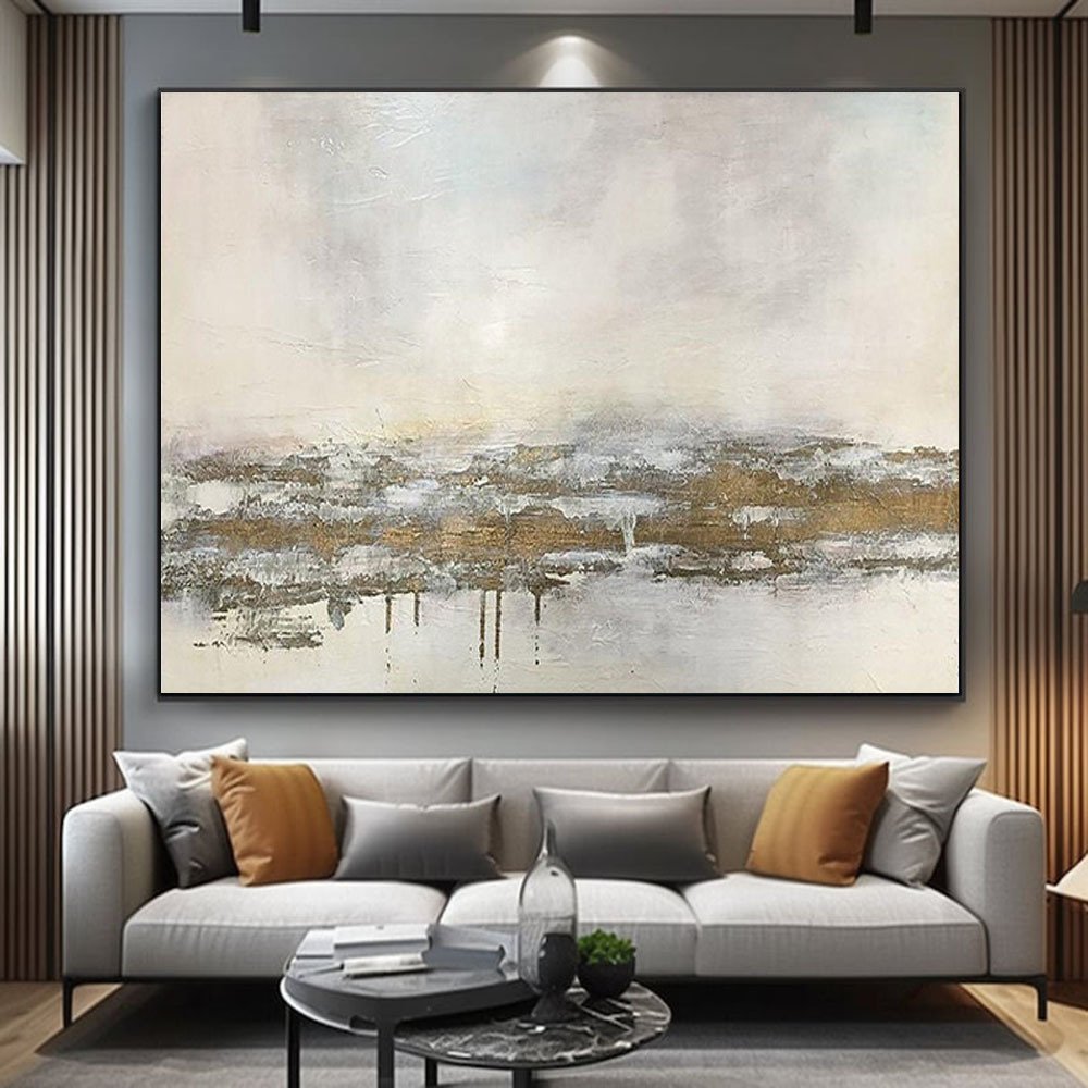 Home > Hand Oil Pianting Large Abstract White Painting on Canvas Gold Leaf Artwork Neutral Wall Art Modern Textured Painting Contemporary Wall Art Hand Paint