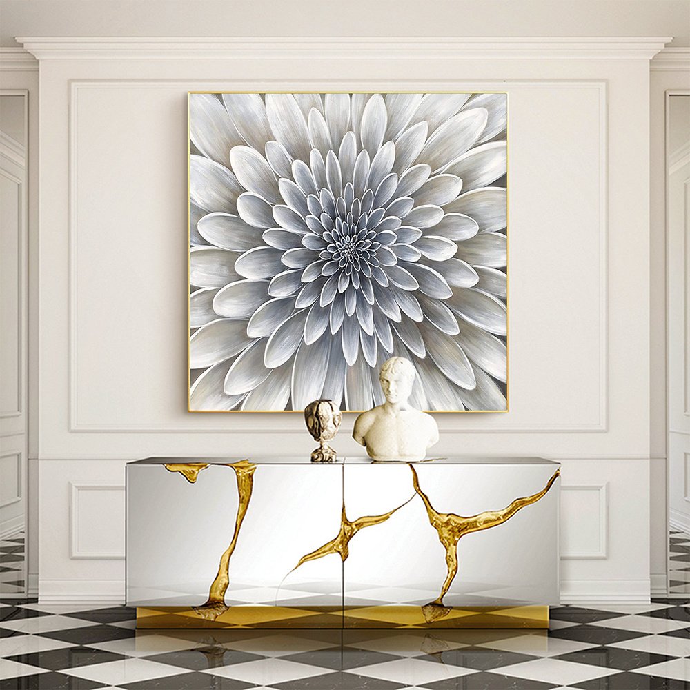 Home > Handmade Oil Painting Original Abstract Flower oil Painting on Canvas Silver Texture Acrylic Painting Modern Floral Art Bedroom Home Decor Wall Art